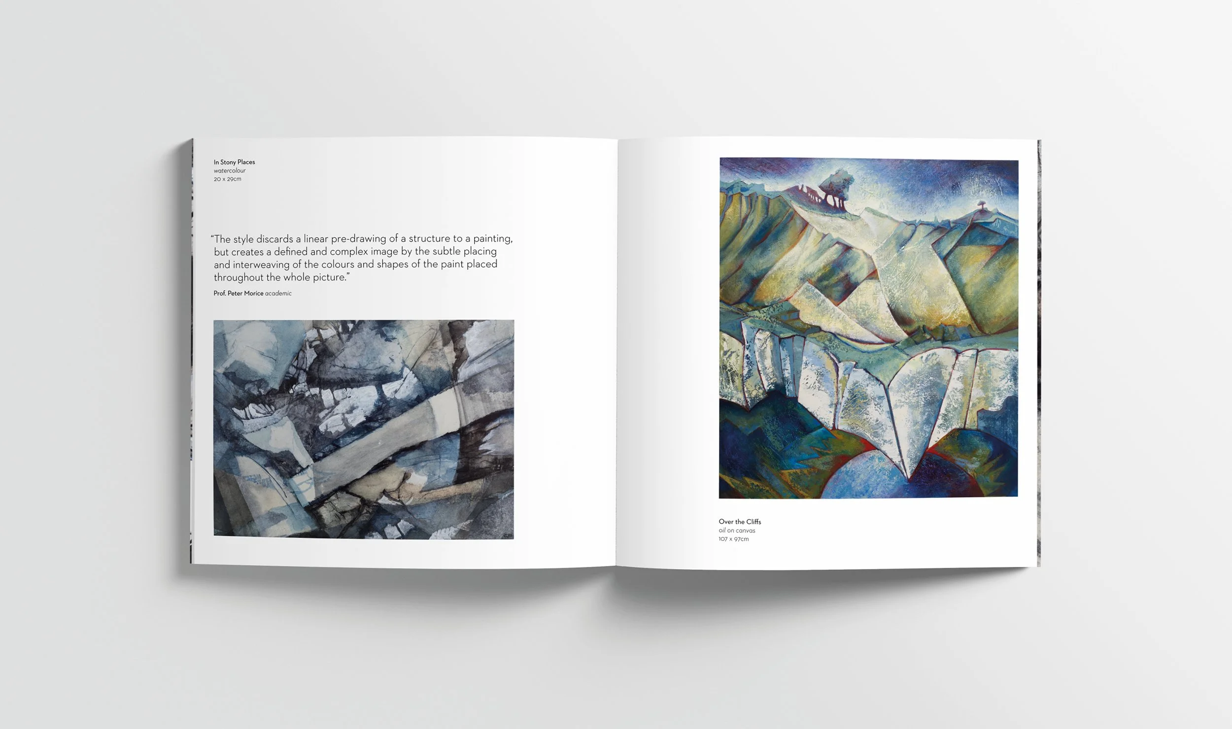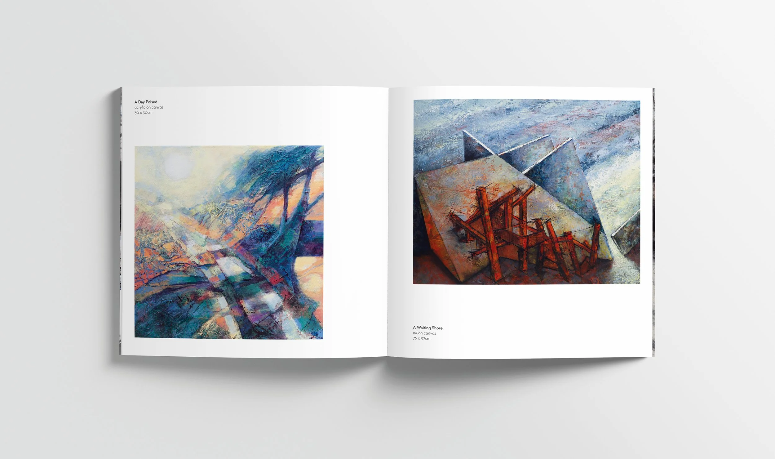 Understated typography and carefully balanced layouts captured the scale, colour and texture of Catherine’s work.