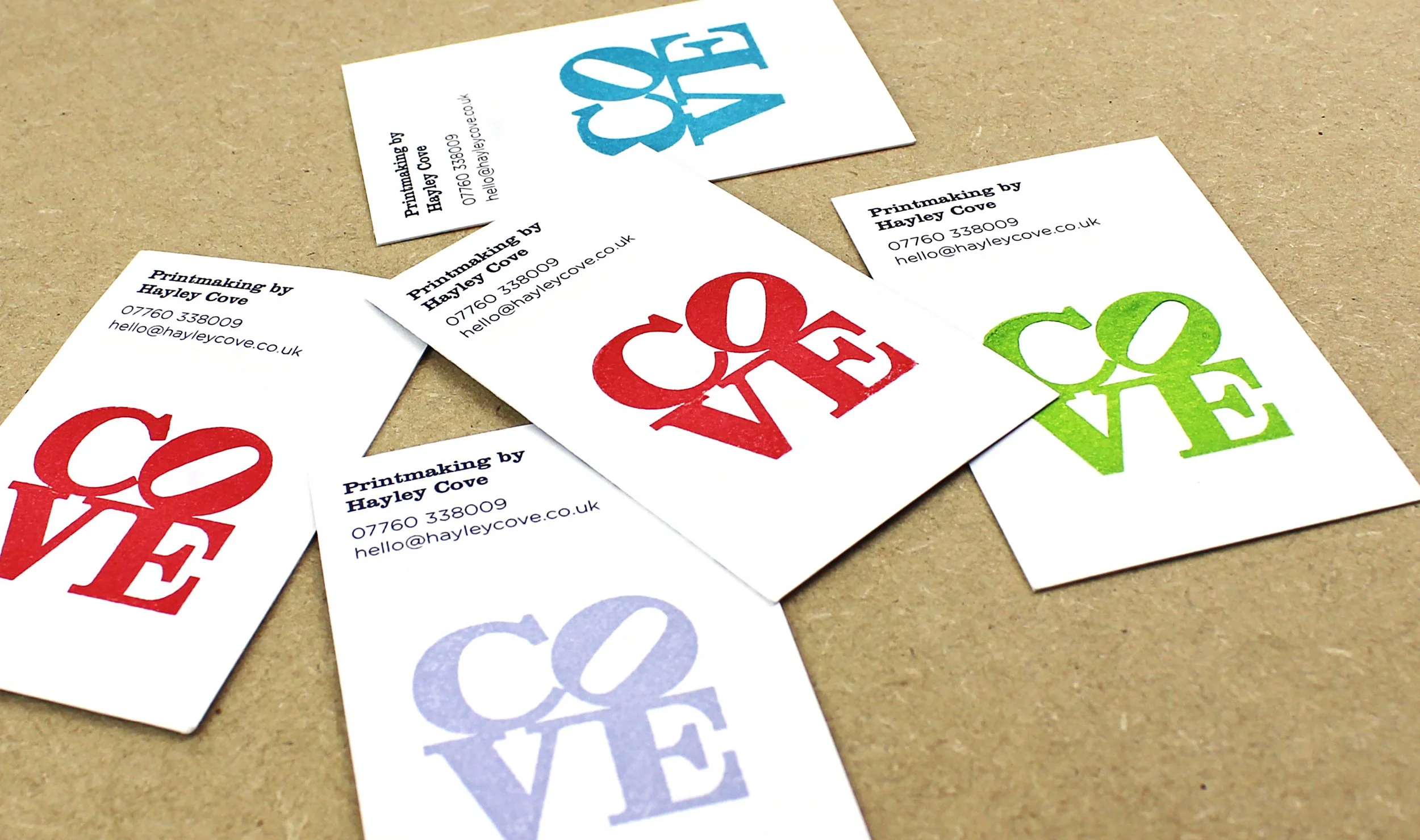 I wanted to convey Hayley’s passion for printmaking. So I turned her surname into a logo that paid homage to Robert Indiana’s iconic ‘Love’ design.